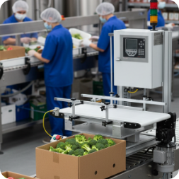 Programa los límites de peso en el tablero de la báscula verificadora INPESA y asegura que cada producto cumpla con las especificaciones.